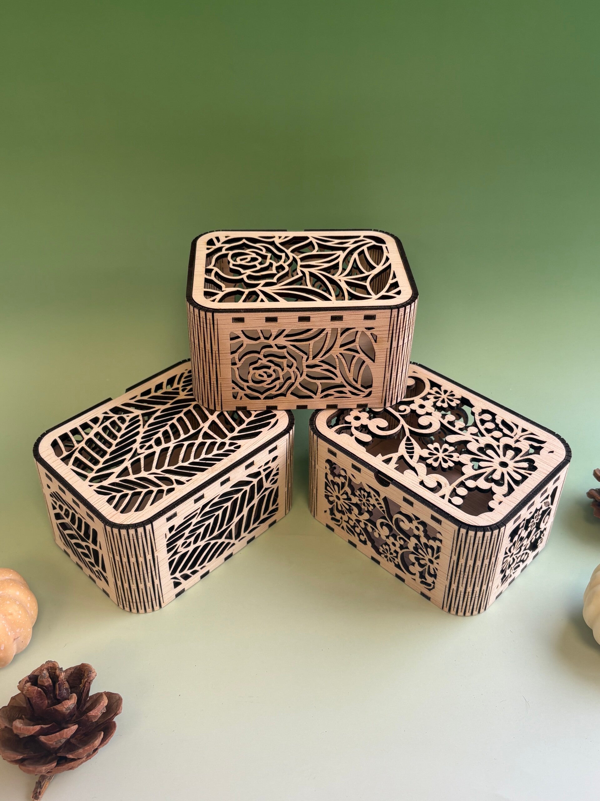 Leaf Whisper, Floral Grace en Rose Romance – elk met hun eigen unieke patroon, maar harmonieus in stijl.
